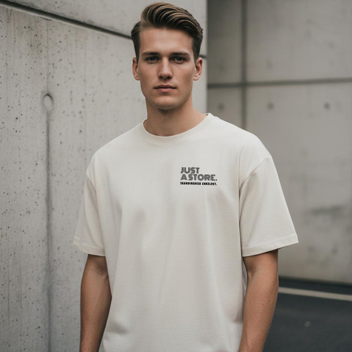 Just A Store-loggan på bröstet – en markering snarare än ett märke.